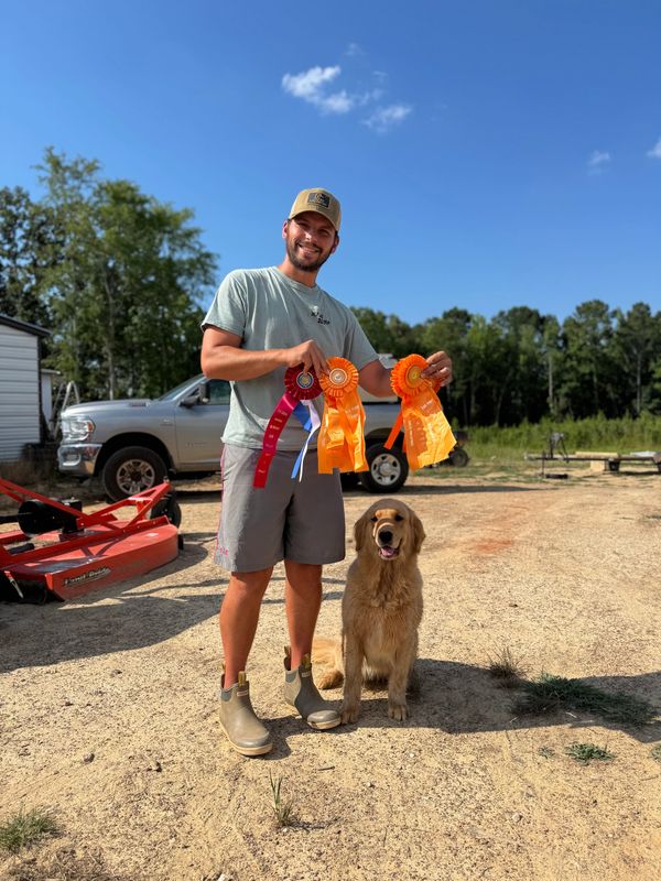 Puddle has an electric personality. She truly fits a true temperament of a golden: “friendly, reliable and trustworthy.” Puddle is an excellent hunter, already holding her Junior Hunt title and currently has passes towards her Senior Hunt. She loves the birds, holds great marks, brings right to hand and has a soft mouth. Puddle is a gentle teacher and excels in a household of varying aged dogs. She’s able to be introduced and immersed in other social groups easily. Being extremely biddable, Puddle also holds a Rally Novice title. While away from hunting, trialing and conformation, Puddle enjoys spending time with her main pack, where she truly molds to play well with puppies as well as senior dogs. She enjoys hiking, going for rides, or cuddling up aside her favorite people on the couch!